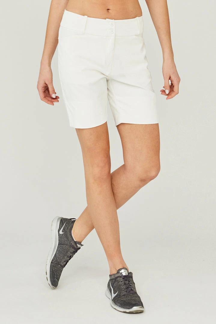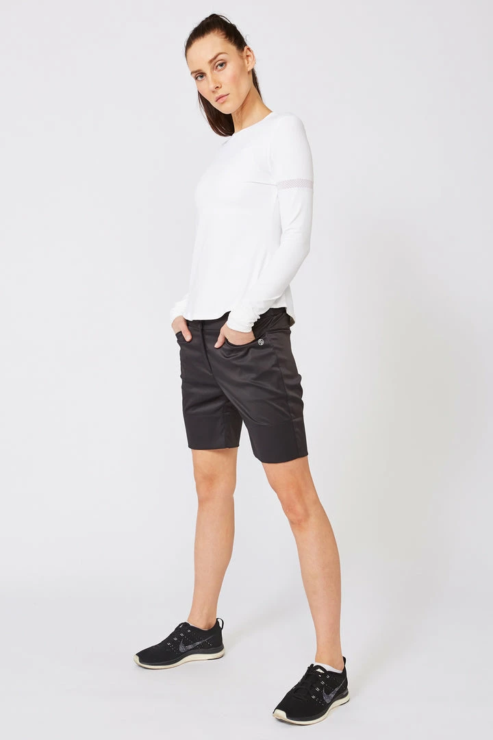 The Range Short is a perfect mid-thigh short with a 9″ inseam. It’s designed with a wide hem, two front slash pockets, and button closure. The back has a yoke & one back pocket. The fabric on this golf short has a beautiful hand-feel and packs well for those golf getaways.