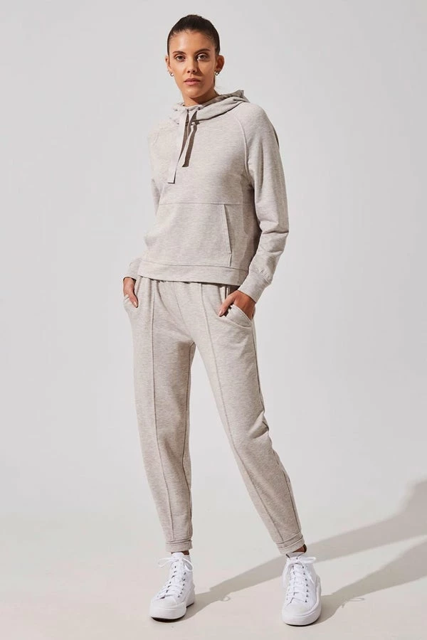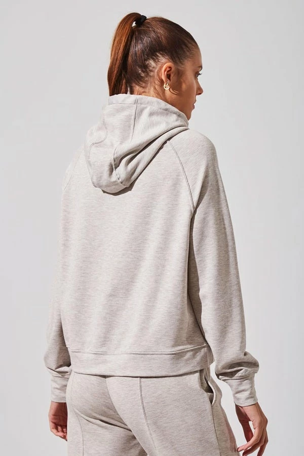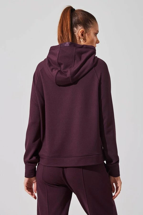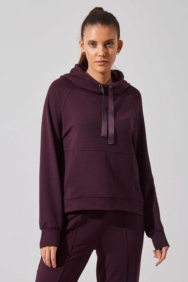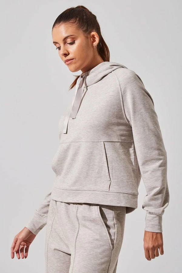 Ladies' Knit Fleece Hoodie w Satin Drawcords Design Features • Satin hood drawcords • Exposed drawcord at CB hood • Branded eyelets • Kanga pocket • Novelty stitching at front and back body • Ultra cozy brushed interior Technical Benefits • Responsibly made • Breathable • Luxuriously soft feel • Light Stretch