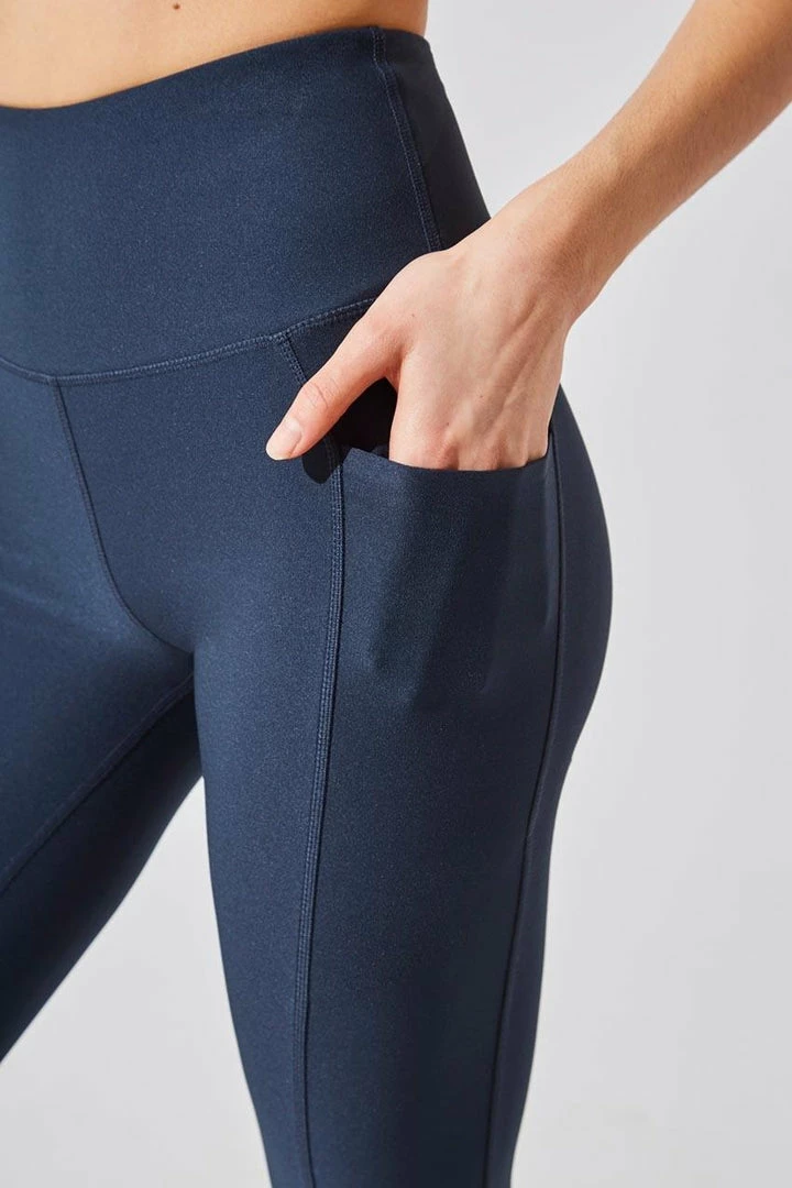 Feel good about sporting the Rival High Waisted Recycled Polyester 7/8 Legging knowing you’re wearing a sustainable style that performs just as hard as you. Sleek side pockets add functionality, designed to snuggly fit electronics for a hands-free workout while strategically placed seamlines provide an ultra-flattering look. Recycled performance fabric offers 4-way stretch and moisture wicking properties, so you stay cool and comfortable from the gym to the airport to the weekend.