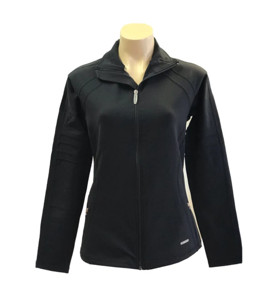 This classic zip-up sweater has returned! Itβs carefully placed lines are flattering and its Nylon / Spandex fabric is breathable. Made in Canada.