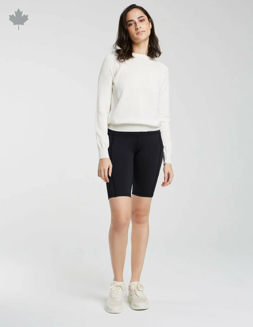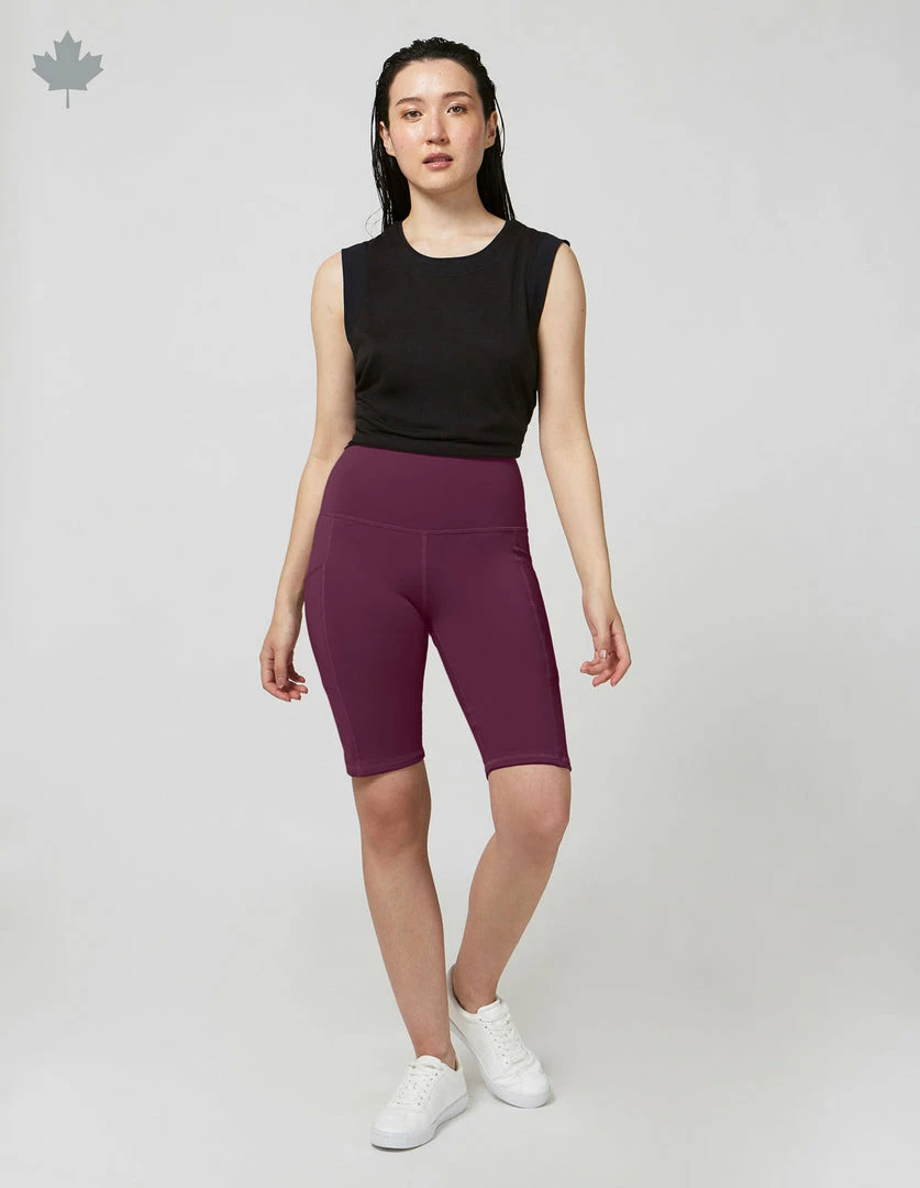The Bloomfield Bike Short from FIG is an amazing 10 inch beauty! Made with recycled polyester, created by using post-consumer plastic bottles. High-rise ultra opaque bike shorts with built-in gusset, two side pockets, and comfortable and compressive waistband.