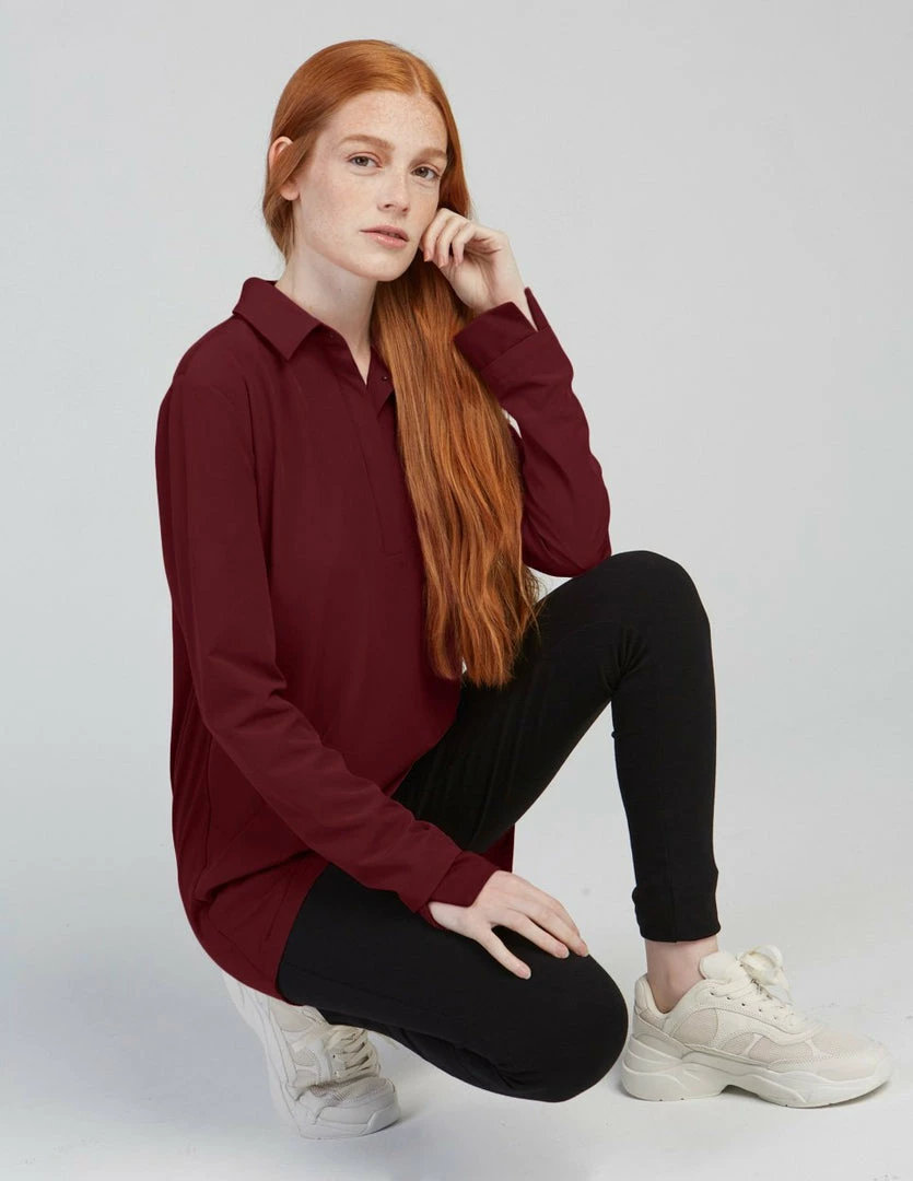 The MAD Tunic is comfortable and classy! Made from Repreve it is moisture wicking, fast drying, super soft and easy care which holds it shape as you wash and wear!