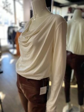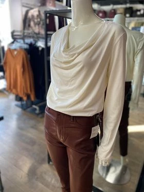 Mododoc Long Sleeve Drape Neck Bodysuit in 3 colors ! Great soft brushed material dress it up or down, come check out these great options for work or play.