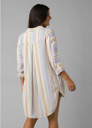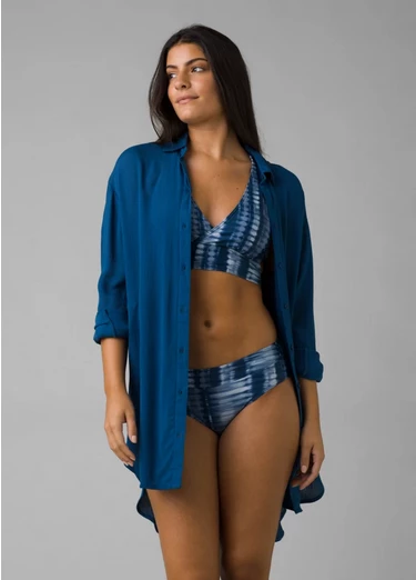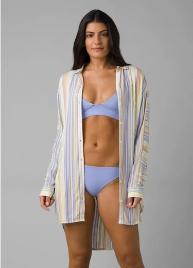 This long-sleeved tunic style has a comfortably relaxed fit and casual mid-thigh length, so it makes for a perfect swimwear coverup. On the other hand, it still looks buttoned up (pun definitely intended) for post-beach day drinks at a local brewery.